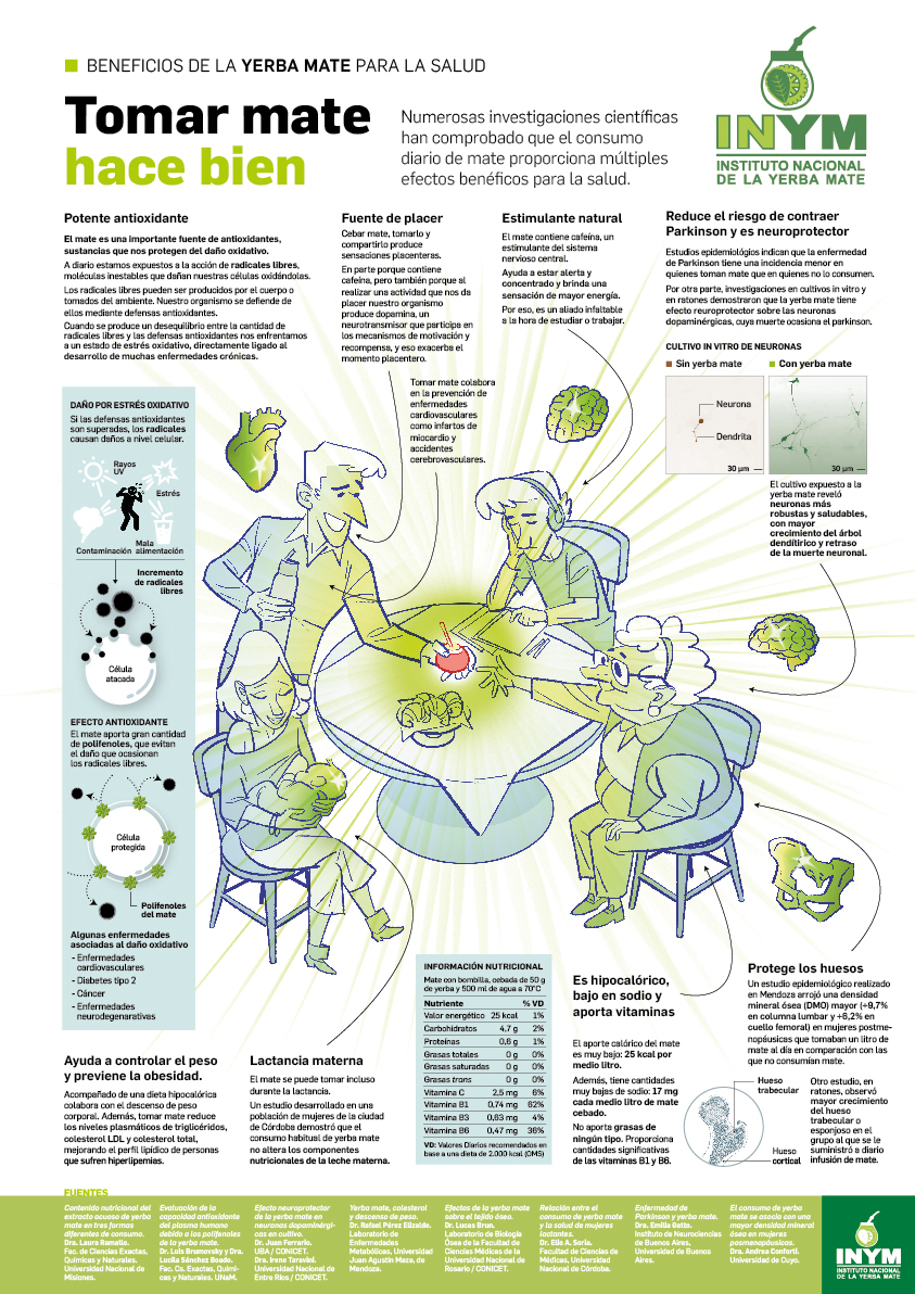 Tomar Mate hace bien:Numerosas Investigaciones científicas han comprobado que el consumo diario de mate ofrece múltiples efectos benéficos para la salud.