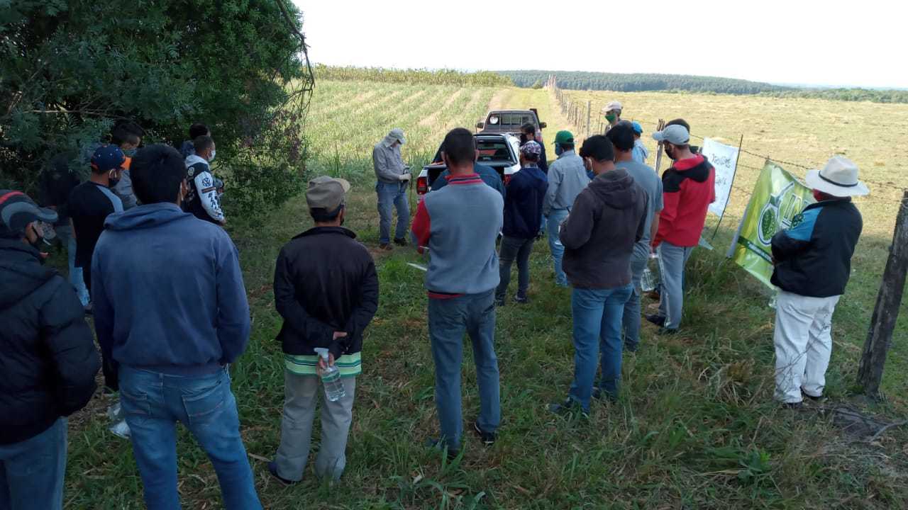 Un grupo de 20 cosecheros de yerba mate de la zona de Itacaruaré (Misiones), asisten hoy a una jornada de capacitación en manejo de suelo y plantaciones en la chacra Juan Pablo Silveira.