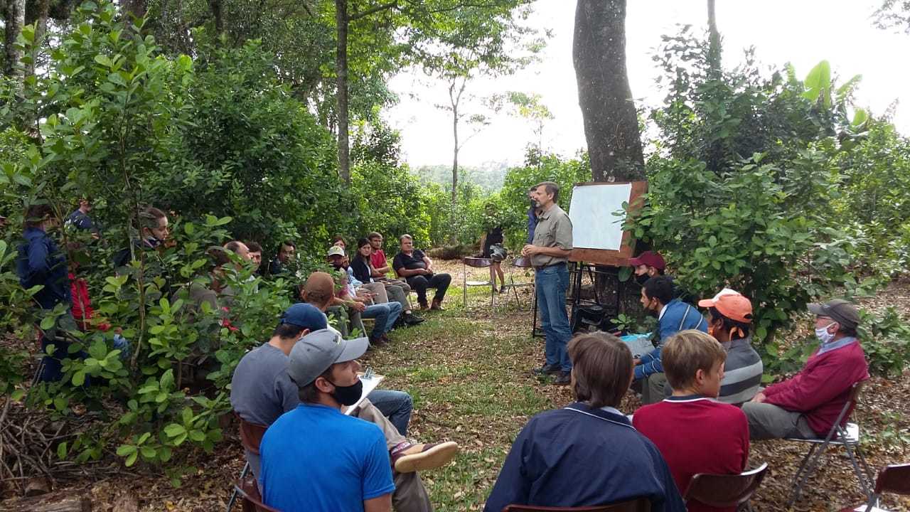 La chacra de Arno Babetske, en Aristóbulo del Valle, fue el escenario de una nueva jornada de capacitación sobre sistemas agroforestales que integran yerba mate que brindó organizaron en forma conjunta el Instituto Nacional de la Yerba Mate (INYM) y el Ministerio del Agro y la Producción de Misiones.