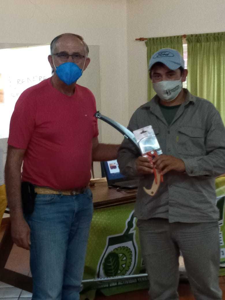 Al concluir el día, cada uno de los trabajadores rurales recibieron de parte del INYM un reconocimiento económico por la jornada laboral que en este caso dedicaron a la capacitación, un serrucho y una tijera para la cosecha, y participaron del sorteo de una motoguadaña.