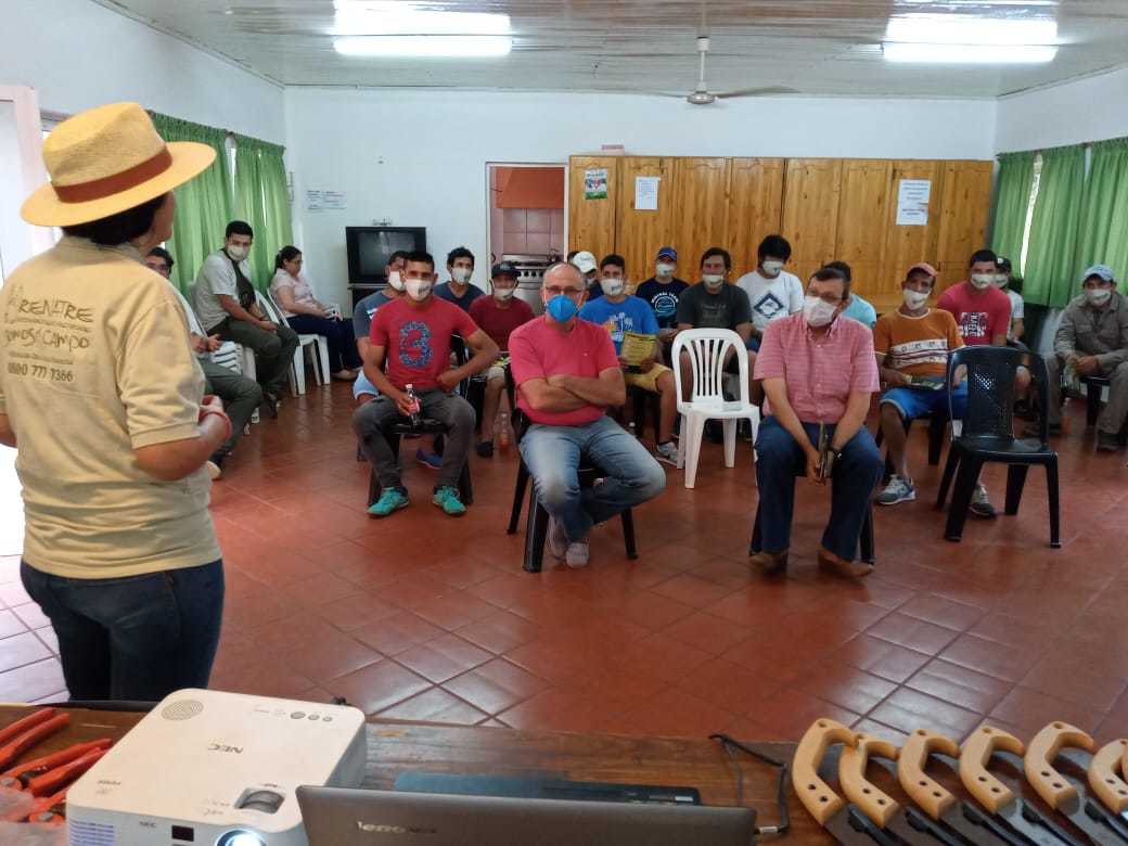 Un total de 30 tareferos compartieron ayer miércoles (25 de noviembre de 2020) una jornada de capacitación sobre cosecha de yerba mate y legislación laboral en Colonia Liebig y en San Carlos, en la provincia de Corrientes, organizado por el INYM en forma conjunta con el RENATRE, el INTA y el gremio rural UATRE.