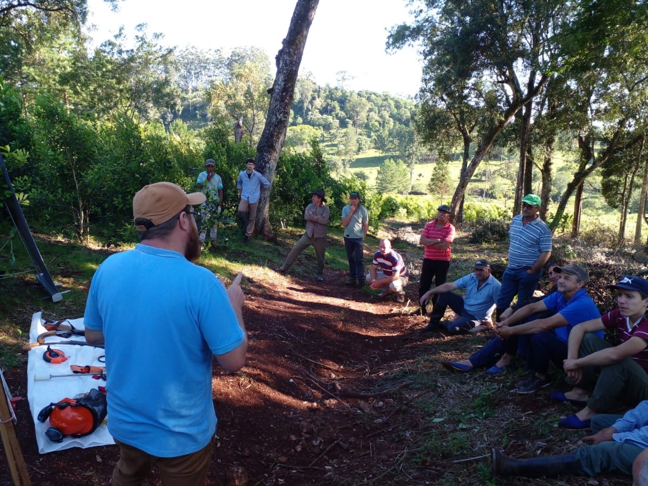 La jornada, el lunes pasado en la chacra de Roberto Buch, se inició con charlas sobre por qué se recomienda la cosecha de rama madura, sistematización de suelo para evitar la erosión y facilitar la infiltración de agua, fertilización y herramientas disponibles para hacer más eficiente el trabajo en el yerbal, y lograr una producción sustentable.
