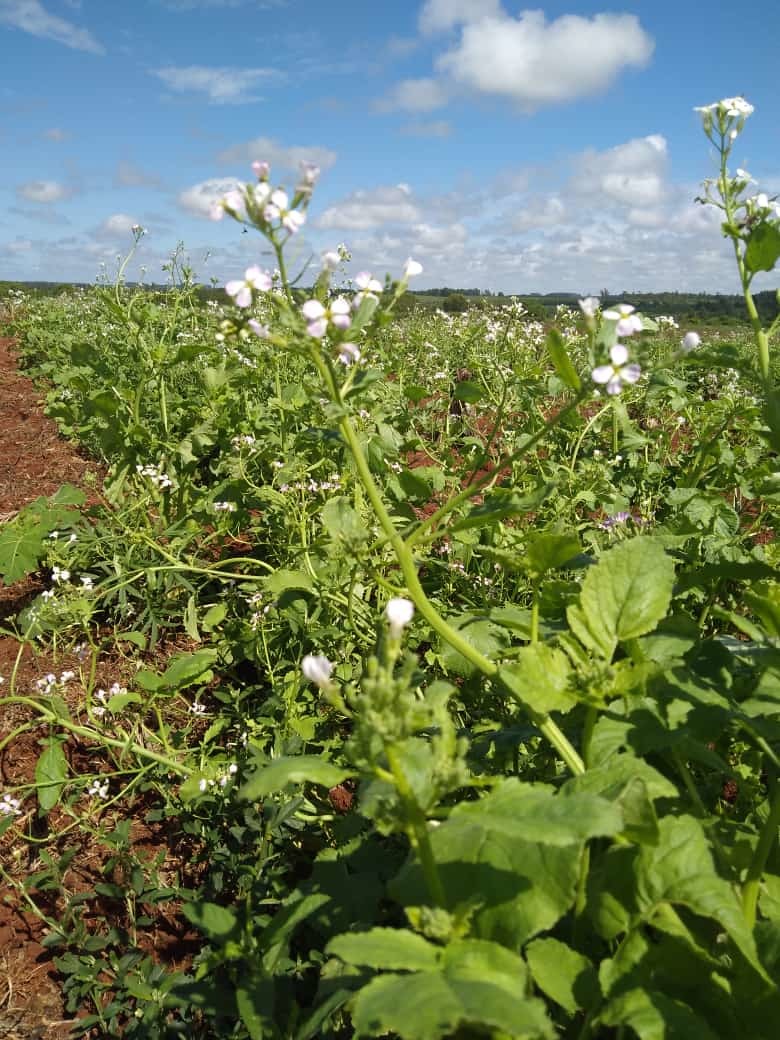 De esta manera, el suelo del yerbal de Renquio comienza a recuperarse, evitando la erosión hídrica, asegurando la infiltración de agua, reincorporando materia orgánica y redundando, con el tiempo, a una mejor producción de hojas en el yerbal. El Nabo forrajero (Raphanus sativus) es una cubierta implantada de suelo de invierno,de la familia de las Crucíferas. Tiene un ciclo anual de hasta 200 días, “y también tiene buena resiembra natural”, destacó Ortega.