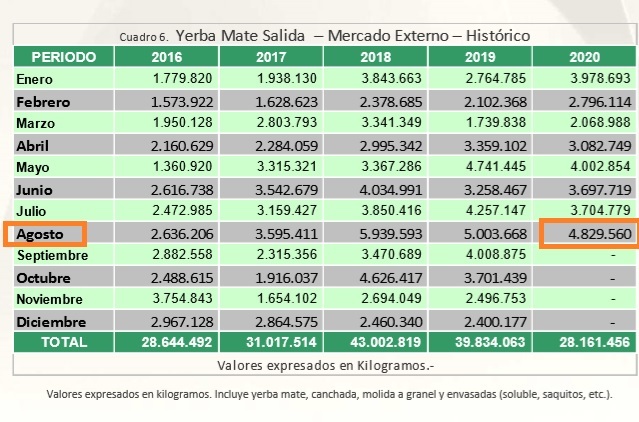 Como hemos señalado anteriormente, se observa que -a pesar del complejo contexto generado por la pandemia de Covid 19- los eslabones de la cadena yerbatera lograron sostener su esquema productivo durante estos meses para satisfacer la demanda; tanto del mercado interno como de las exportaciones.