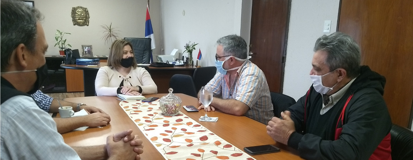Los representantes de la Producción en el Instituto, Nelson Dalcolmo, Jonas Petterson y Claudio Marcelo Hacklander, se reunieron ayer (14 de septiembre de 2020) con la ministra de Acción Cooperativa Mutual, Comercio e Integración de Misiones, Karina Aguirre, para analizar líneas de acción en conjunto para el sector yerbatero.