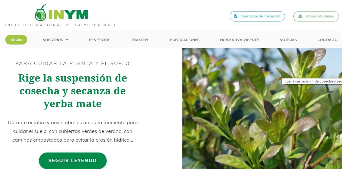 En este nuevo diseño también se destaca la posibilidad de tener a primera vista las últimas noticias; además en la home se encuentran las solapas para ingresar a la normativa vigente, los datos de contacto, una breve historia del Instituto y acceso directo a las estadísticas mensuales del sector yerbatero.