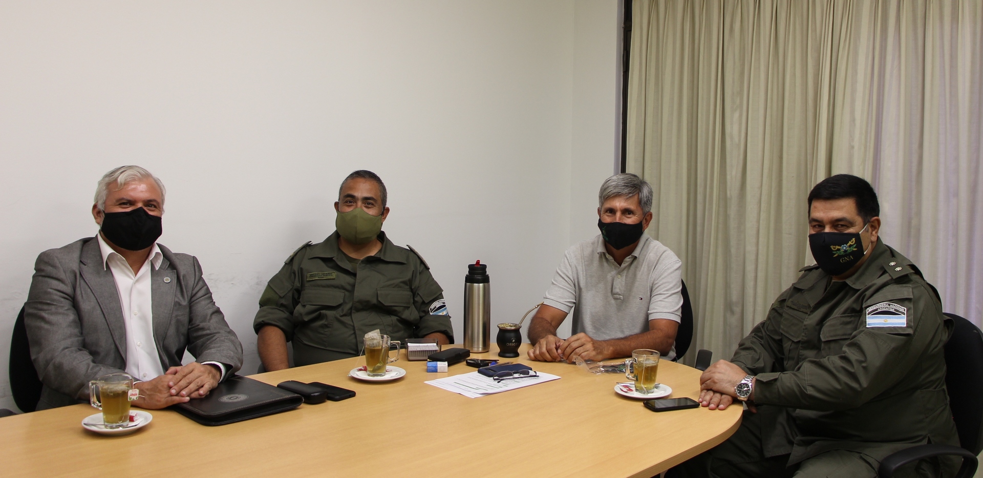 El presidente del INYM, contador Juan José Szychowski, se reunió hoy con el jefe de Agrupación Corrientes de Gendarmería Nacional (GN), comandante primero Daniel Esteban Vallejo; el jefe del Escuadrón Santo Tomé, comandante primero Luis Moyano, y el jefe de la Unidad de Reunión de Información Corrientes, comandante Fernando Rodríguez, como parte de las acciones de acercamiento institucional.