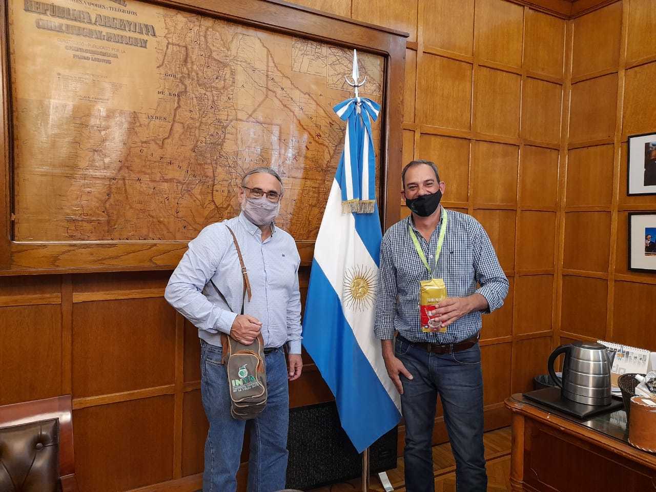 El director por la Producción en el INYM, Jonás Petterson, mantuvo un encuentro el jueves pasado (25 de febrero de 2021) con el ministro de Agricultura de la Nación, Luis Basterra, oportunidad en que dialogaron sobre la actualidad de los productores y el rol de las cooperativas en la actividad yerbatera.