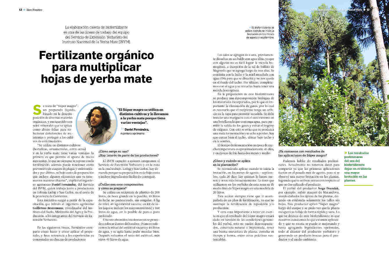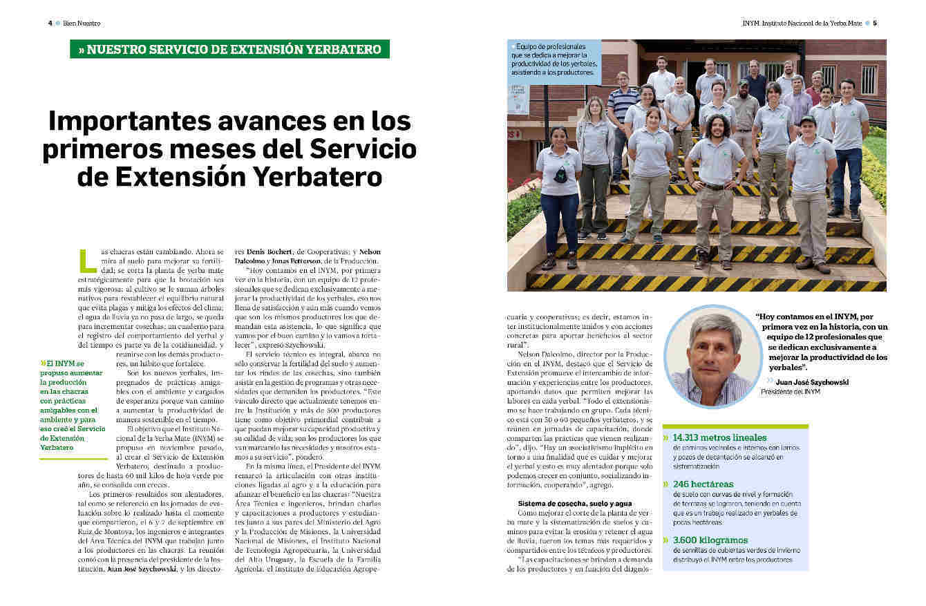 En este número:Importantes avances en El Servicio de Extensión Yerbatero del INYM, creado para asistir a pequeños productores de yerba mate.