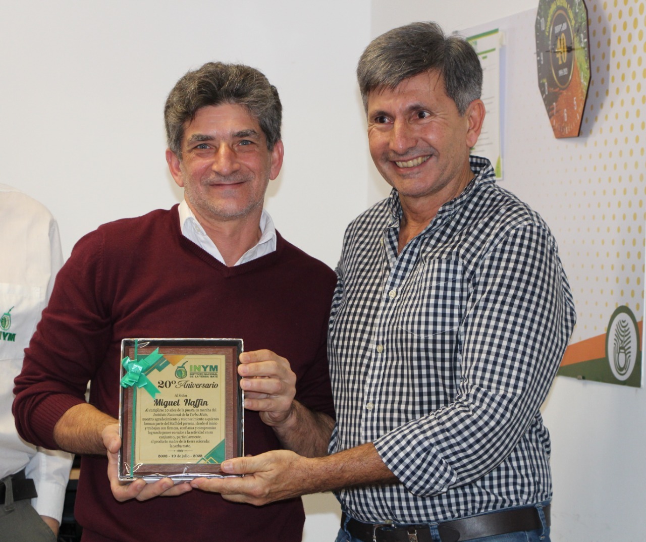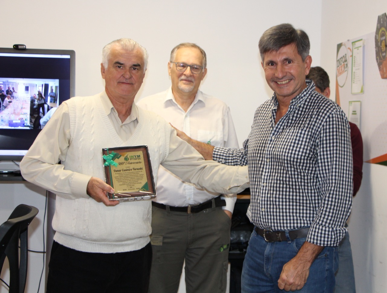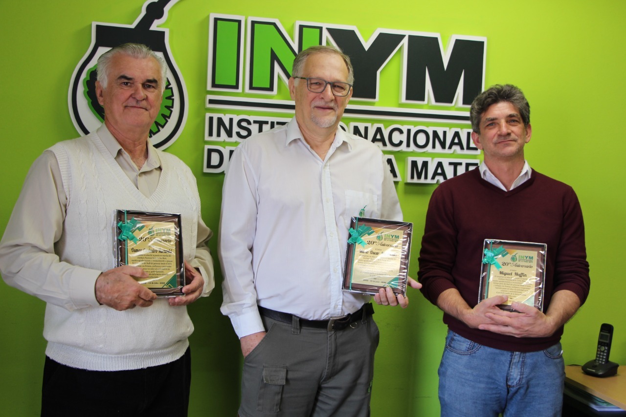 En el marco del aniversario número 20, el Directorio del Instituto Nacional de la Yerba Mate (INYM) efectuó hoy (5 de agosto de 2022) un reconocimiento a los empleados que son parte de la Institución desde su génesis. Se trata de Mario Oscar Maslovski, Osmar Casimiro Tarnoski y Miguel Naffin.