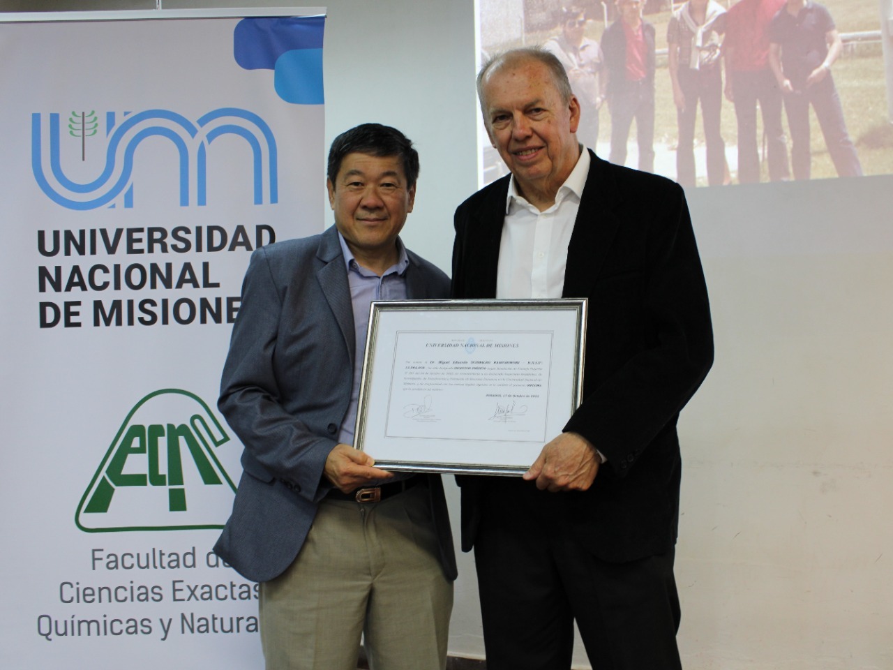 En un acto cargado de emoción y agradecimiento por los aportes realizados desde la ciencia al desarrollo, especialmente en el sector yerbatero, fue distinguido ayer (15 de noviembre de 2022) como Profesor Emérito de la Universidad Nacional de Misiones (UNAM), el Dr. Miguel Eduardo Schmalko Radichowski.