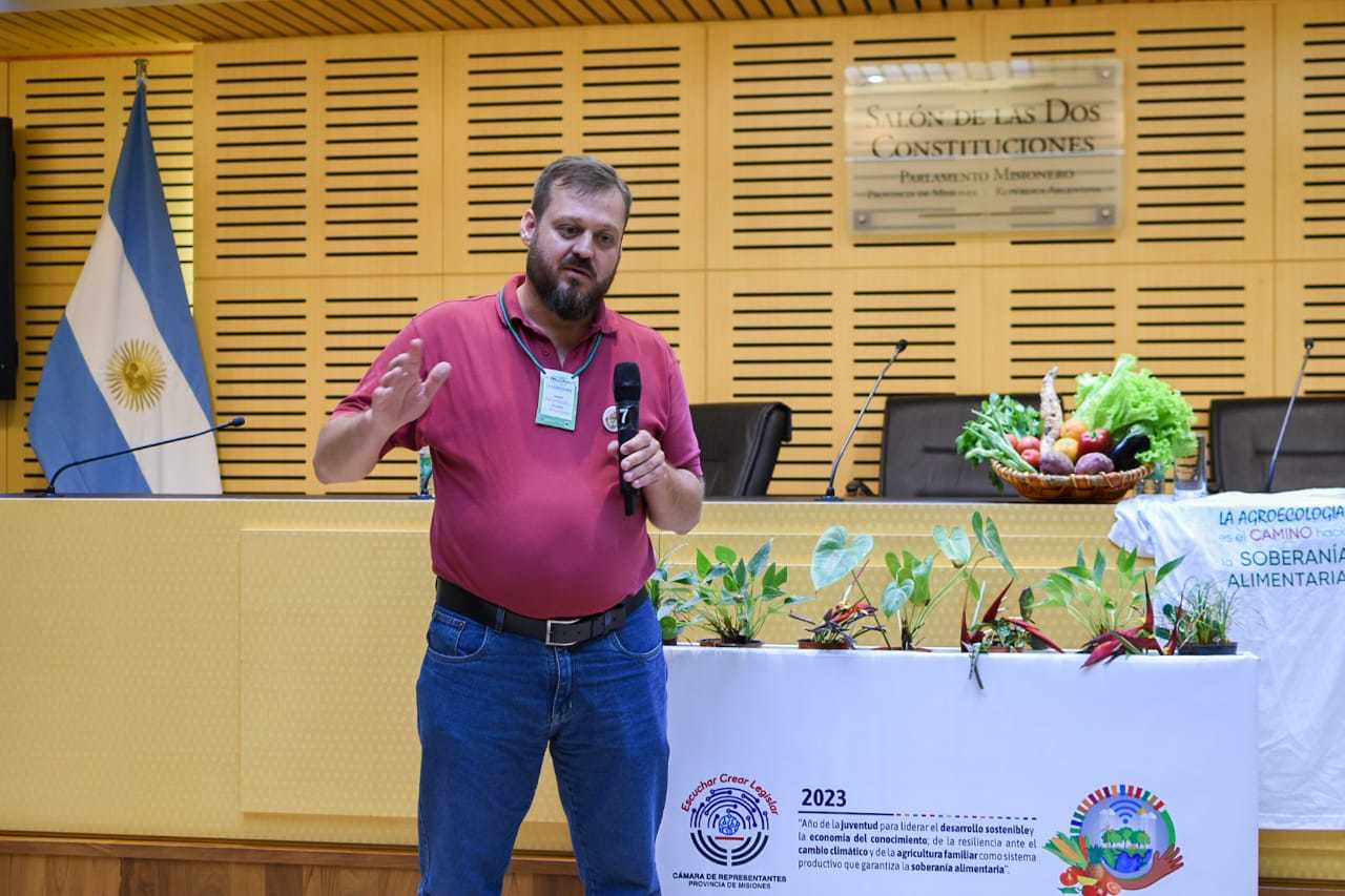 El director por la Producción del INYM, Nelson Dalcolmo, y el jefe del Servicio de Extensión Yerbatero de la institución, participaron de conversatorio con disertaciones de expertos en agroecología en la Cámara de Diputados de Misiones.