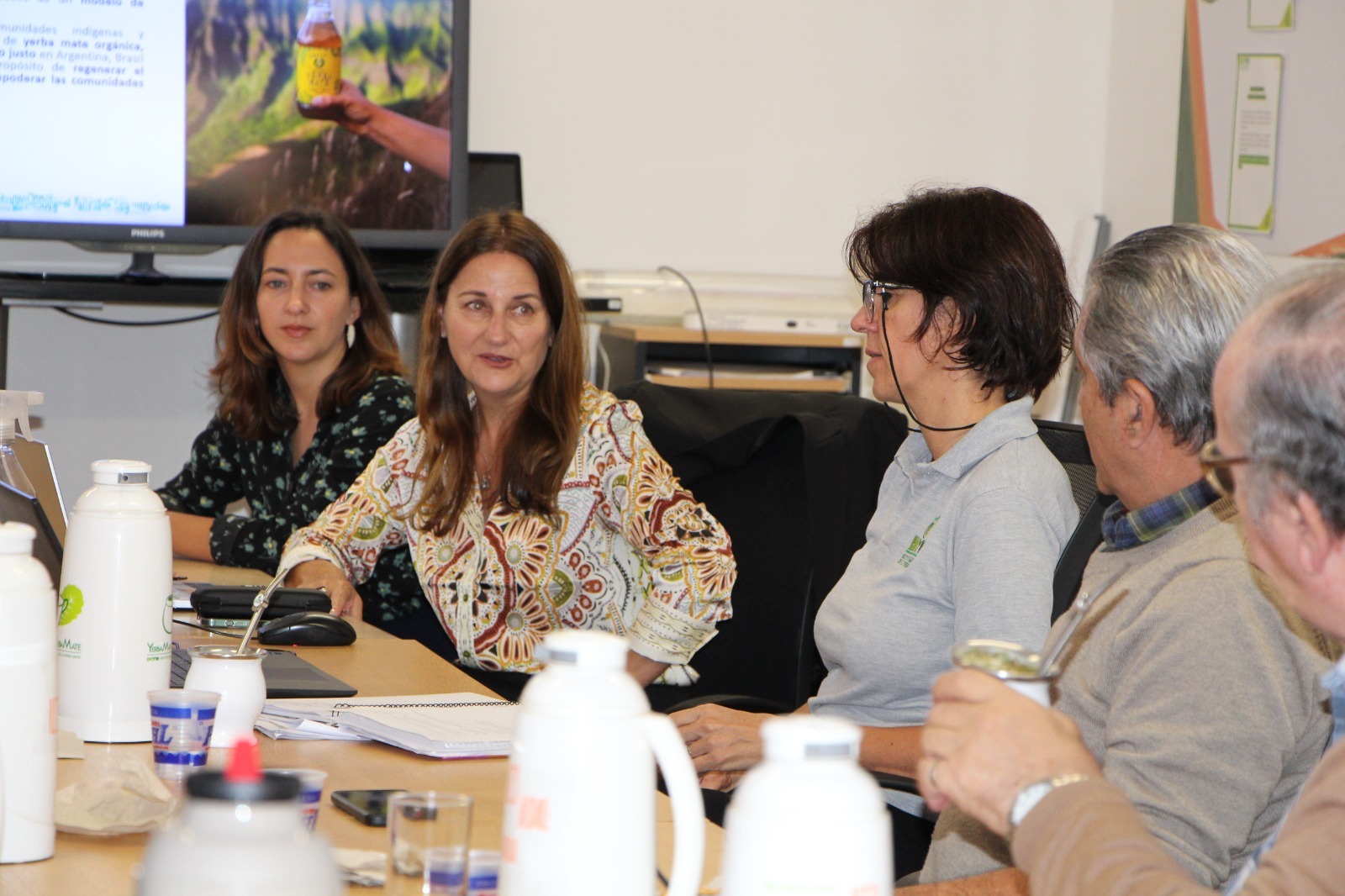 En la sede del INYM, en Posadas, ante los directores, la vicepresidenta de Guayaki para Latinoamérica, Fabiana Rosa Pose, junto a la consultora para Impacto y Sustentabilidad, Rocío Bermúdez Pose, compartió los resultados de la experiencia que llevan adelante en zona Norte y Centro de la provincia de Misiones, destacando los beneficios de esta forma de producción para los desafíos actuales, dado que confiere resiliencia al cultivo de yerba mate ante fenómenos climáticos extremos, como períodos de sequía o de lluvias repentinas intensas, con impacto directo en la productividad.