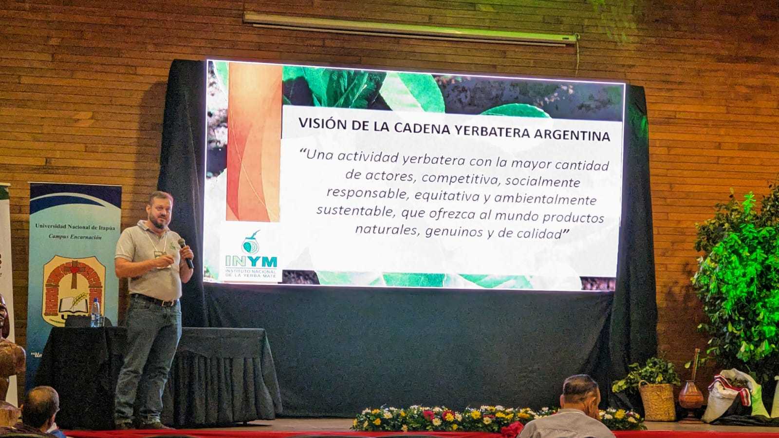 El ingeniero Matías Bazila, jefe del Servicio de Extensión Yerbatero del INYM, fue quien socializó en el Congreso los avances del INYM en beneficio del sector, repasando el origen de la Institución, la creación del Área Técnica con sus diferentes programas volcados a los distintos eslabones de la cadena yerbatera, y la vigencia del Servicio de Extensión Yerbatero.