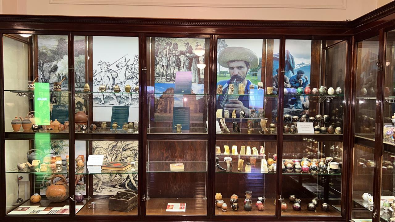 El recorrido comienza con un mate de cáliz que pertenece a la familia Wright, dueña del local donde funcionó el Bazar Inglés desde 1879 hasta 2012. En otras vitrinas, se destacan las reseñas de los guaraníes y los gauchos en su relación con esta infusión; además, una infinidad de objetos como los calentadores y cocinas campestres, pavas, termos y bombillas. En medio del salón se exhibe un carro polaco, con su carga de calabacines y bolsas con hojas cosechadas de la planta.