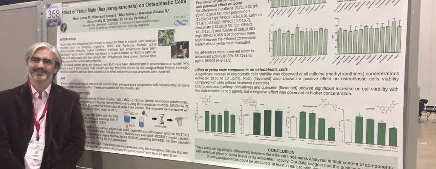 El estudio de los efectos beneficiosos de la yerba mate sobre el tejido óseo, que financia el Instituto Nacional de la Yerba Mate (INYM) fue presentado por el investigador Lucas Brun en el Congreso de la Sociedad Americana para la Investigación Ósea y Mineral, ASBMR 2017.