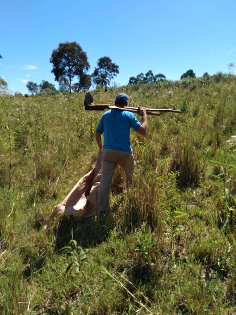 Un viejo potrero será transformado en un yerbal sustentable. En eso están trabajando el técnico del Servicio de Extensión Yerbatero del INYM, el ing. Cristian Olivera, y el agricultor Rubén Kluge, en San Pedro, de marcado perfil productivo ambiental.