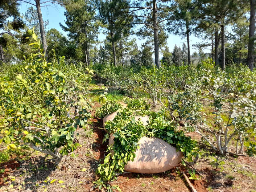 La zona geográfica es propicia para heladas. Para evitar los efectos de este fenómeno natural, el técnico y el productor decidieron modificar la forma de cosecha. “Cambiamos tel sistema de corte porque las plantas venían decayendo, incluso una parcela no se cosechó durante un año por el mal estado en que se encontraba”, recordó Herrera. “Se hacía cosecha tradicional, sacando casi todas las hojas y ramas; en reemplazo se optó por dejar banderas, más follaje, y eso nos ha dado importantes resultados porque las plantas quedan protegidas del frío y del sol intenso, ya no decaen”, enfatizó.
