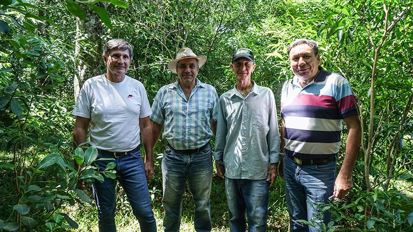 En las cinco hectáreas de yerba mate que este productor trabaja junto a su nieto obtiene un rendimiento promedio de 10 mil kilos por hectárea, integrando la ganadería, en un manejo que apunta a la restauración del monte, la protección de las cuencas y la recuperación de plantas. “Tengo mucha yerba en el monte sembrada por los pájaros que llevaron la semilla, el año ante pasado saqué más de 20 mil kilos de yerba del monte”, comentó.