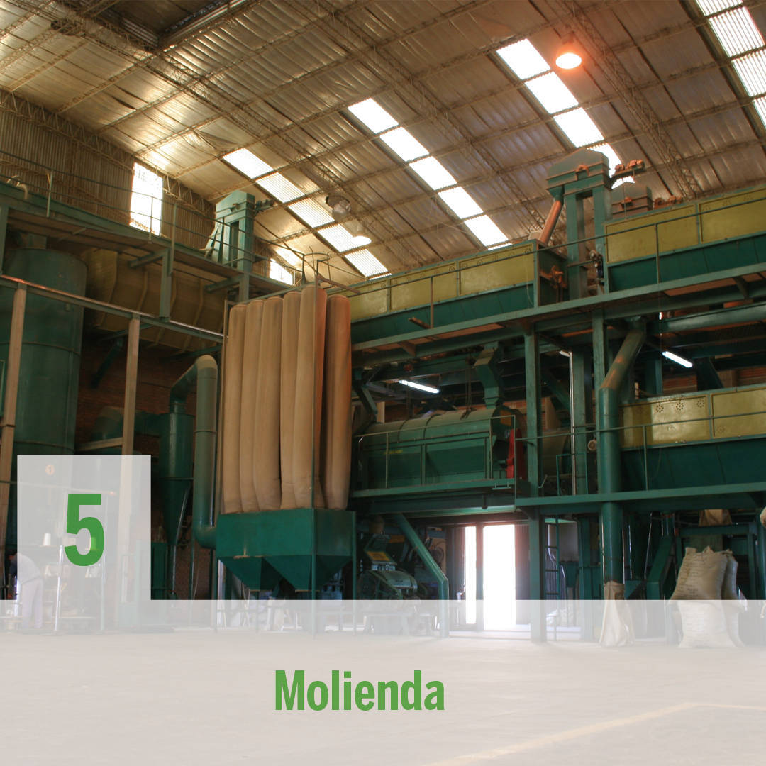 Se realiza una primera molienda gruesa o “canchado” de la hoja ya seca. Luego se coloca la yerba canchada en bolsas y se la estaciona