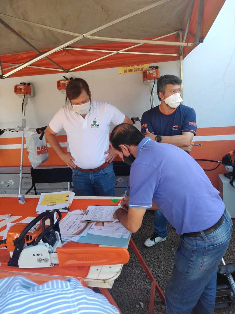 Así resumió Nelson Dalcolmo, director por los Productores, el accionar de la Institución, hoy (21 de octubre de 2020) presente en San Vicente, junto a 30 agricultores, con la entrega de motosierras y motoguadañas.