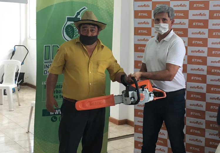Inigio Collman, otro de los agricultores en Dos de Mayo, destacó que “tanto la motosierra como la motoguadaña son necesarias para los trabajos en la chacra y mediante los programas del INYM, ahora podemos comprar estas herramientas; podríamos decir que pagamos una y llevamos dos herramientas