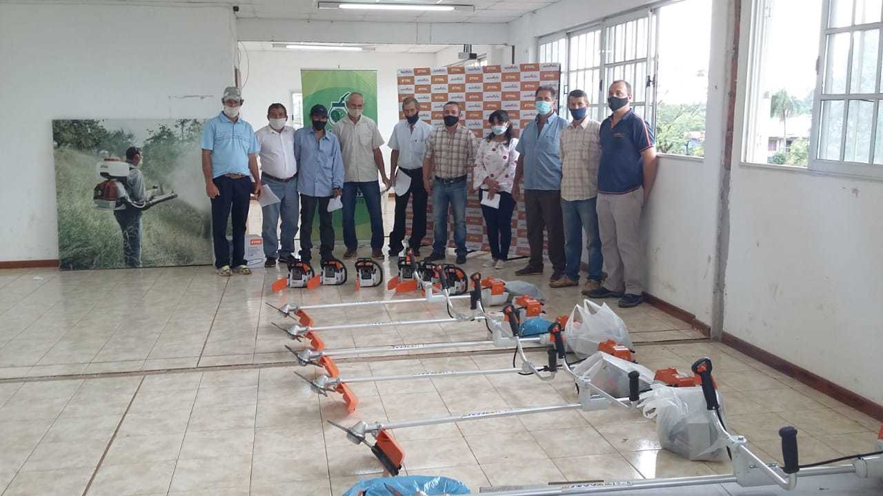 Este jueves (12 de noviembre de 2020) el director Ramón Segovia, representante de los Cosecheros en el INYM, y el Área Técnica de la institución entregaron tijeras electrónicas, motoguadañas y motosierras a productores de San Pedro, San Vicente, 2 de Mayo y Aristóbulo del Valle.