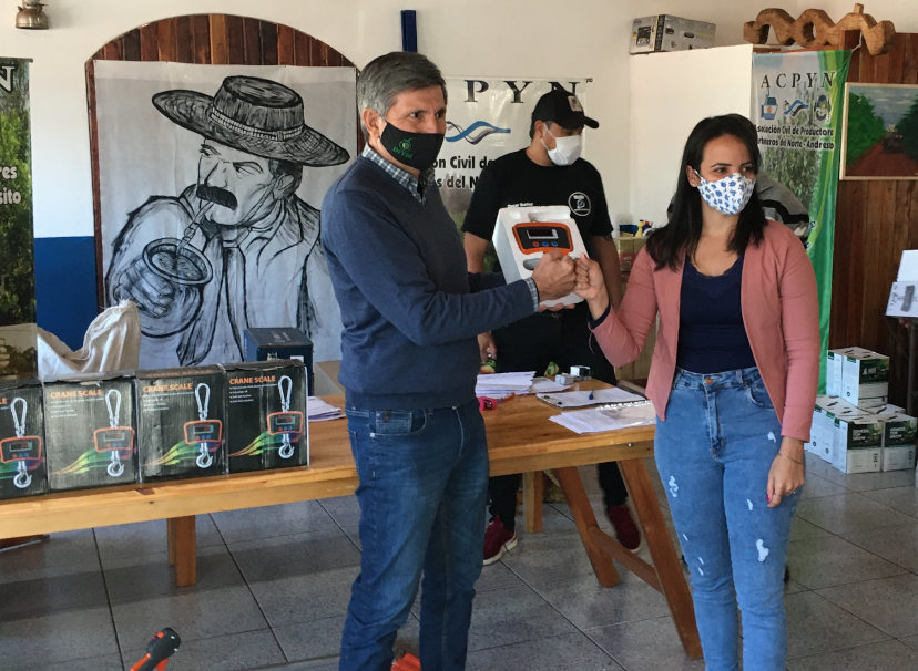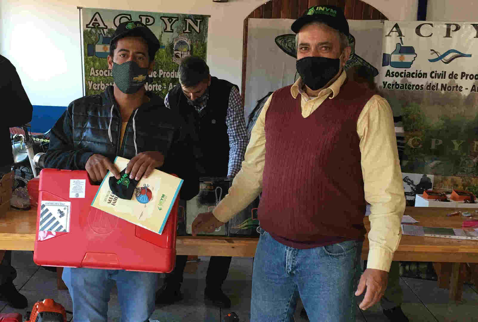 En el marco de los programas para el mejoramiento de la cosecha instrumentados por el INYM, los productores recibieron balanzas electrónicas para el pesaje de los raídos de hoja verde, tijeras electrónicas y motoguadañas; mientras que la EFA recibió la donación de una motoguadaña y una motosierra.