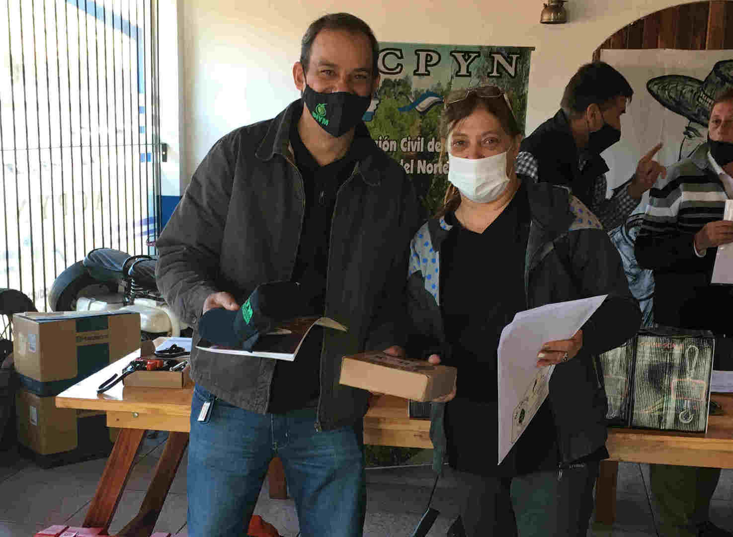Las entregas estuvieron a cargo del presidente del INYM, Juan José, Szychowski, quien fue acompañado por los directores por el Sector de la Producción Jonás Petterson, Nelson Dalcolmo y Marcelo Hacklander; además del titular de la Asociación Civil Productores Yerbateros del Norte (ACPYN), Julio Petterson.
