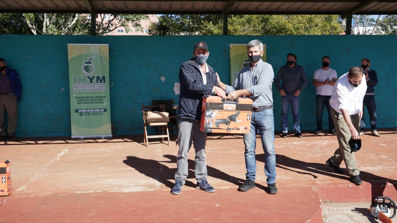 Pequeños productores de la localidad de San Pedro y prestadores de servicio recibieron este martes 1 de junio un importante lote de herramientas que incorporarán a sus chacras para el manejo de los yerbales y la mejora en el sistema de cosecha.
