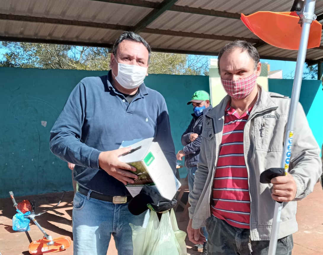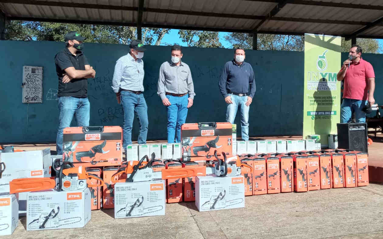 Un total de 48 implementos que optimizan el trabajo y mejoran el rendimiento de los yerbales, todos con tecnología de vanguardia, fueron entregados a productores de San Pedro durante un acto presidido por el presidente del Instituto , Juan José Szychowski, el intendente local, Miguel Ángel Dos Santos y el titular de la Cooperativa Siete Estrellas, Ariel Steffen.