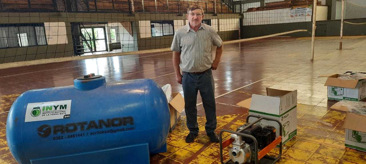 Ayer y hoy el INYM concretó más entregas de tanques de agua y motobombas a productores de distintas localidades de la zona productora de yerba mate.