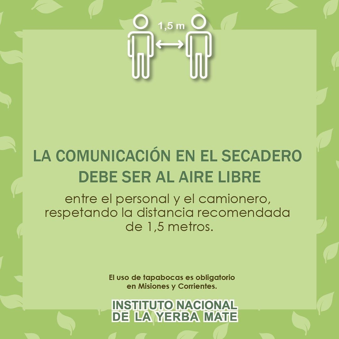 Se recuerda que en tiempos de pandemia, como la actual, todas las actividades del sector yerbatero deben realizarse siguiendo los protocolos que garantizan la seguridad sanitaria de los trabajadores y la inocuidad del producto.