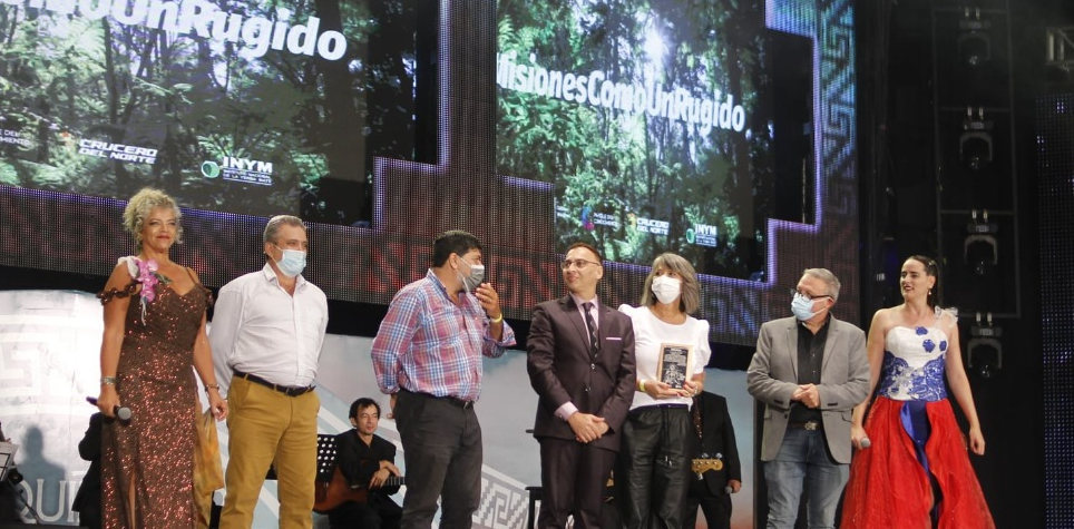 Tras culminar la presentación de la obra ante unos 4.000 espectadores, subieron al escenario referentes de las instituciones que hicieron posible el despliegue artístico de esta región, entre ellos el director por la Producción en el INYM, Nelson Dalcolmo, y el ministro de Cultura, Joselo Schuap.