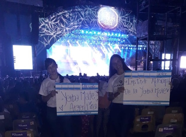 En paralelo, integrantes de la delegación de la tierra colorada, con remeras que llevan la inscripción Yerba Mate Argentina, compartieron material escrito con el público presente.