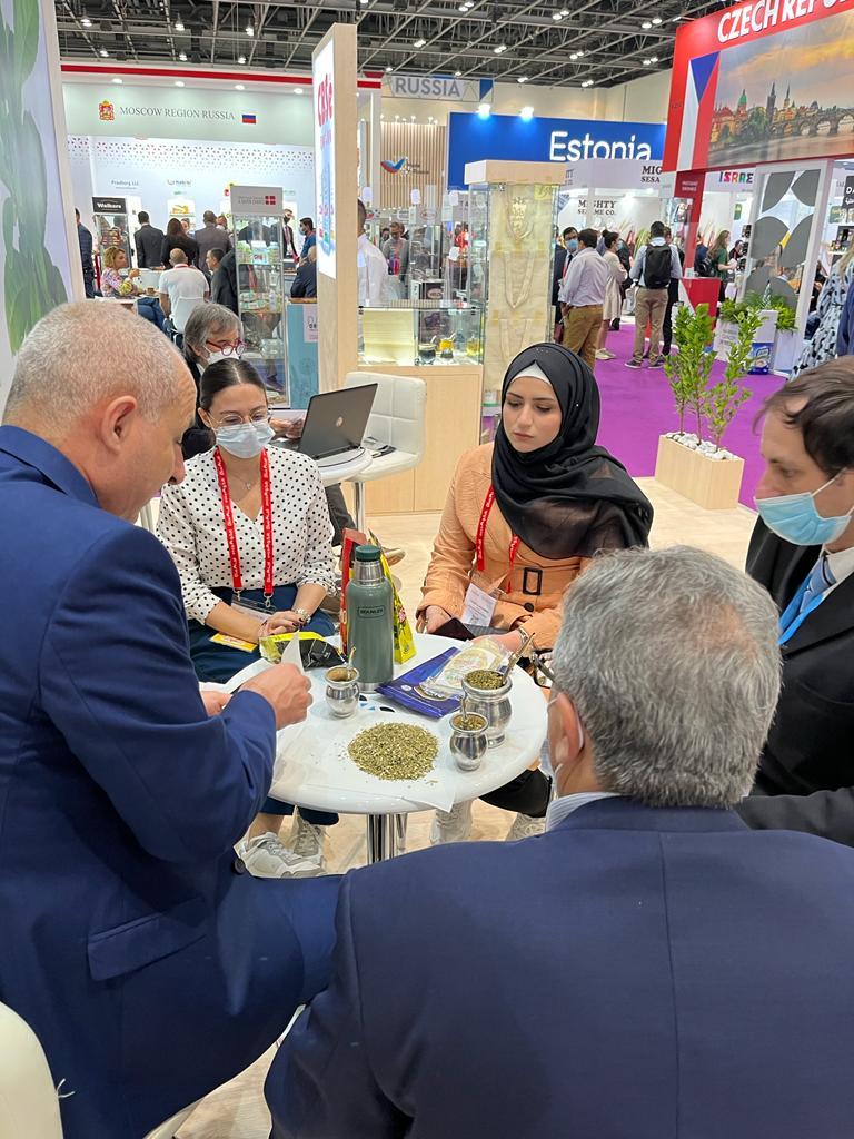 Durante el año 2021 se exportaron a los Emiratos 110 toneladas de yerba mate, cifra que esperamos incrementar entre un 45% a un 60% durante el 2022. Queremos manifestar un agradecimiento especial a nuestro Embajador en los Emiratos Árabes Unidos, Agustín Molina Arambarri, que junto a todo su staff nos han facilitado importantes contactos para poder concretar negocios”, subrayó Gustavo Redondo, en representación de todos los establecimientos presentes en la feria.