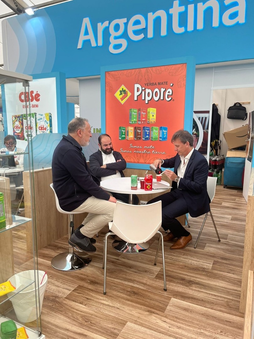 “En el marco de la mayor feria alimentaria mundial, la SIAL 2022, participamos hoy en Paris de un encuentro de posicionamiento de la yerba mate nacional y sus productos derivados”, twitteo Guillermo Merediz, subsecretario de Comercio e Inversión de Cancillería, junto a una foto con los directores por la Producción del INYM, Jonas Petterson y Claudio Marcelo Hacklander, tras acercarse personalmente al evento y compartir, además de charla con los expositores, la degustación que ofreció la sommelier Carolina Vincenzo.