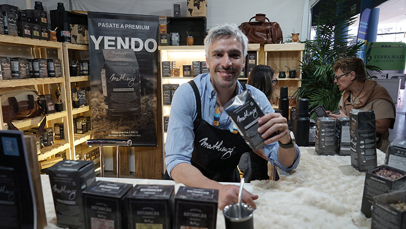 El concepto de producción yerba mate vinculada al cuidado del medio ambiente es cada vez más valorado por los consumidores y así lo entienden muchos emprendedores, como el caso de los creadores de Mathienzo. Oriundos de Río Negro, apuestan al valor agregado de la sustentabilidad. “Apuntamos a los nuevos consumidores que no solamente aprecian la calidad del producto, sino también por nuestro propósito que es la reforestación de árboles nativos, ya que cada paquete que se vende está conectado a la reforestación en nuestra provincia y la Patagonia Argentina”, explicó Nicolás Tiferes, para luego mostrar los distintos blends que combinan yerba mate con especias y pétalos de flores de la Patagonia.