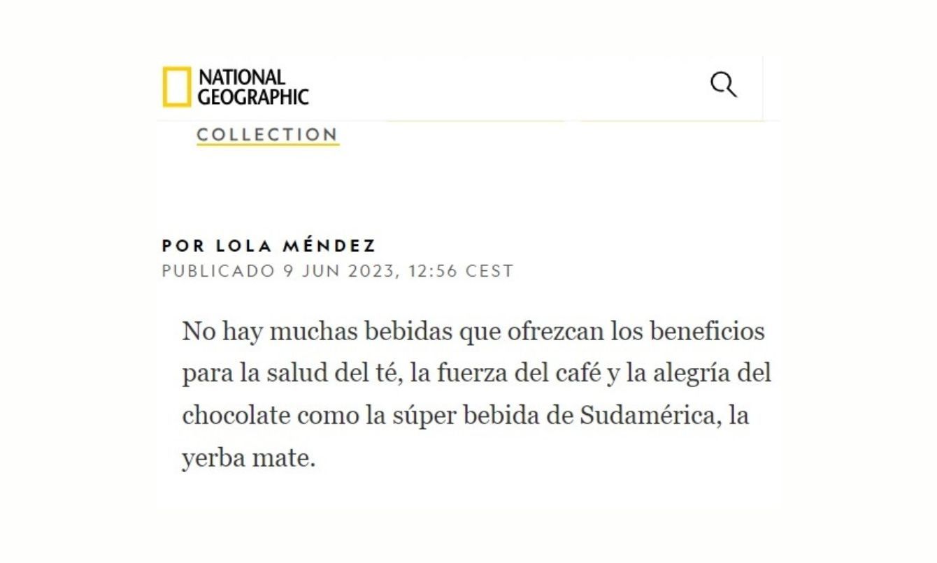 Las líneas de National Geographic repasan el origen y la historia de la tradición matera, junto a los guaraníes en contacto con la Mata Atlántica / Selva Paranaense, y sus cualidades para la salud al señalar “beneficios para la pérdida de peso, la concentración y una mejor digestión”, además de “sus propiedades antimicrobianas, (…) la disminución del azúcar en sangre, así como la reducción de los niveles de colesterol, el riesgo de cardiopatías y la inflamación crónica”.