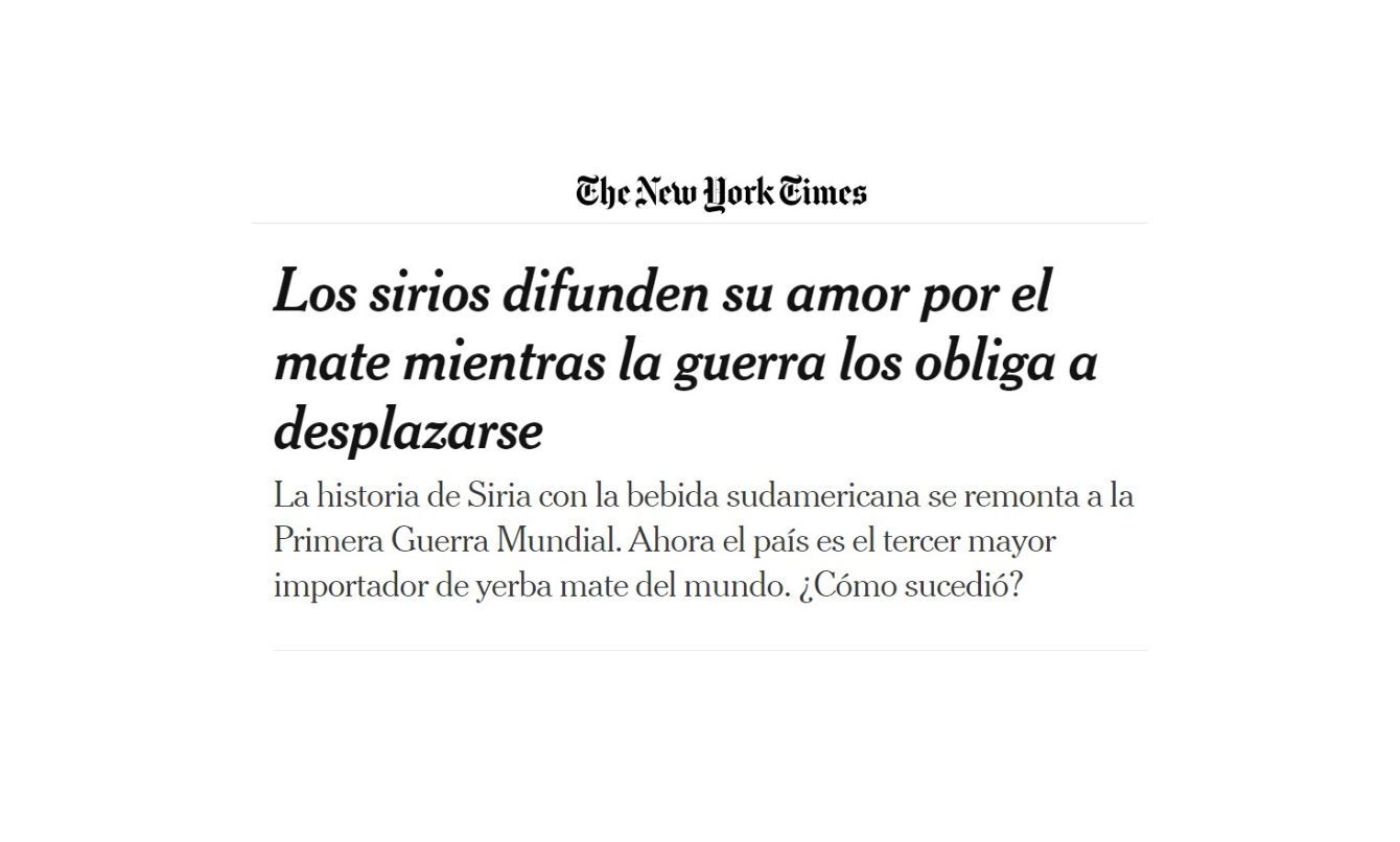 El artículo enfatiza sobre la permanencia del mate en aquel territorio más allá de los conflictos bélicos, repasando de qué manera el alimento llegó a manos de los sirios y desde entonces es parte de su cotidianeidad, consumiéndose en reuniones familiares, de negocios, en el ejército e incluso apareciendo regularmente en las telenovelas.